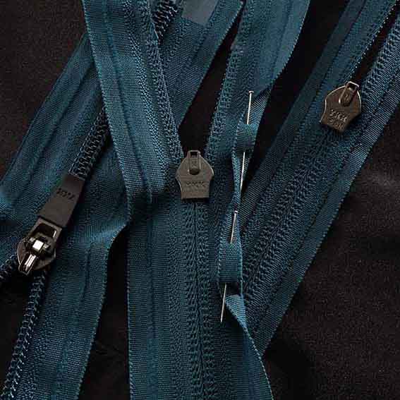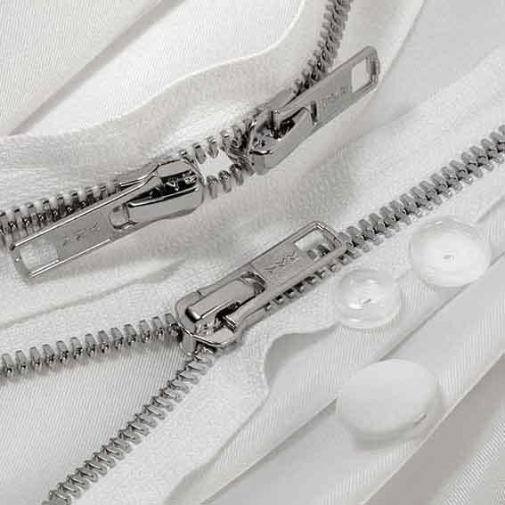 Zip e bottoni pronti per tinta consentono di procedere alla produzione nelle diverse gradazioni di colore all’arrivo degli ordini, senza dover ricorrere ad onerosi e rischiosi stoccaggi a magazzino.